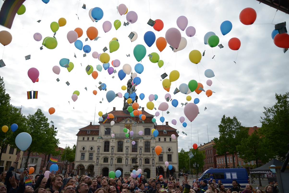 Wie im letzten Jahr haben wir den den internationalen Tag gegen Homo-, Bi-, Trans*- und Inter*phobie gemeinsam mit vielen anderen gefeiert. Die freiwillige Feuerwehr Lüneburg war eine von vielen Unterstützenden auf dem Lüneburger Marktplatz. Im Mittelpunkt stand natürlich wieder das Steigenlassen von hunderten bunten Luftballons mit Botschaften für Toleranz. Danke an alle, die heute da waren – es hat uns sehr viel Spaß gemacht!